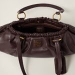 The Joie nappa leather bag, a style recovered from the Miu Miu archives, is reinterpreted in terms of its light, casual, and compact structure and attitude, creating a bag with timeless charm. The leather trick adds a refined detail while the lettering logo in relief completes the design with an iconic note.