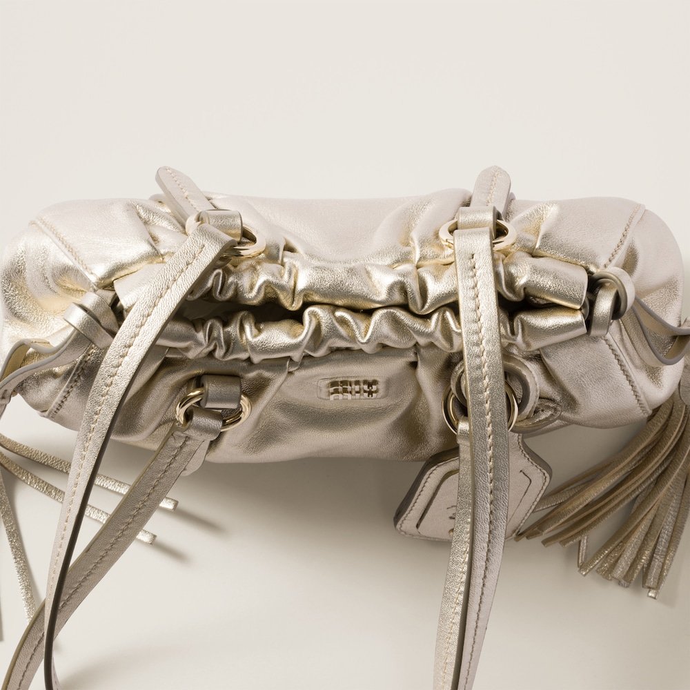 The contemporary charm of the Joie Bag is expressed in its archival silhouette enhanced by soft nappa leather and the particular finishes of this mini-bag version.