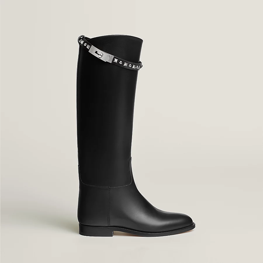 Boot in calfskin with straps featuring the iconic Medor studs.