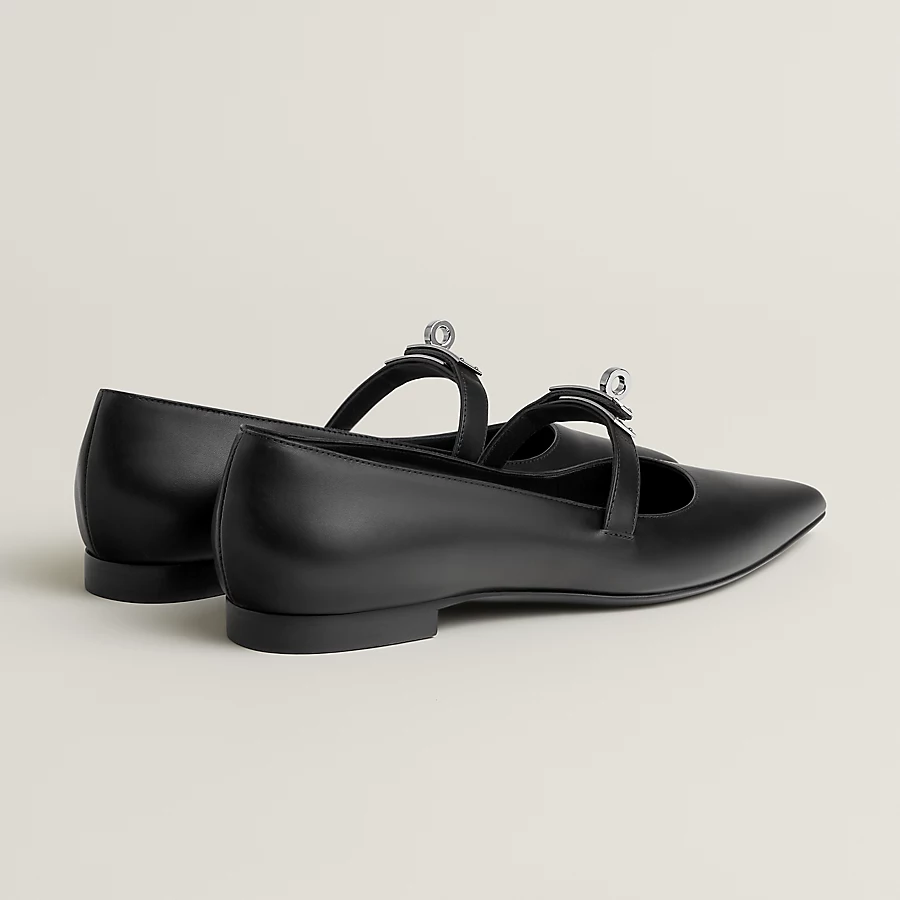 Pointed-toe ballet flat in calfskin with iconic Kelly buckle.
