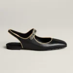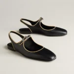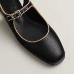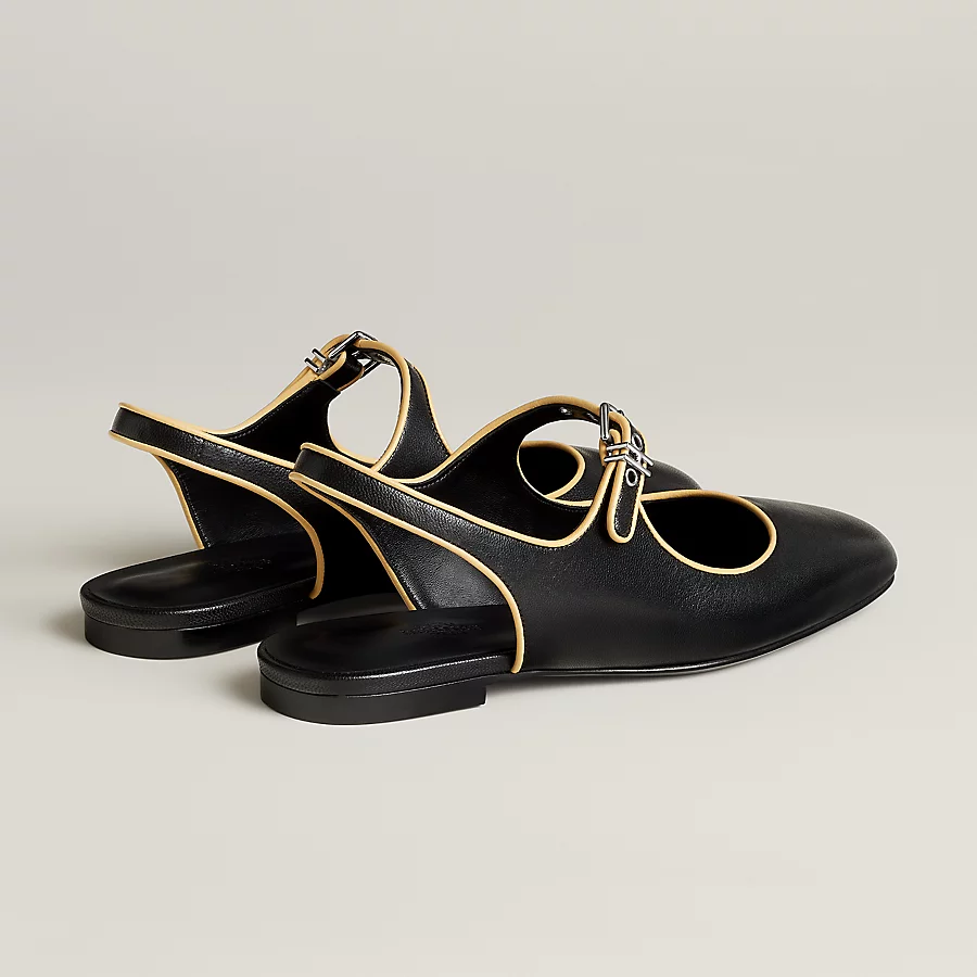 Slingback in goatskin and Nappa leather with signature ‘H’ buckle and contrasting piping.