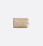 The Lady Dior Freesia card holder presents an elegant and practical style. Crafted in sand-colored patent calfskin with Cannage stitching, it is embellished with detachable D.I.O.R. charms. Featuring five card slots, the refined accessory easily slips into any pocket or bag and can be paired with other Lady Dior creations.