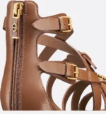 New for Summer 2025, the L’Amazone Dior sandal offers a new take on the timeless gladiator style with the House’s couture details. The design showcases elegant adjustable buckled camel calfskin Dior straps, while the rubber sole offers ultimate comfort. The shoe will add a refined touch to any of the season’s looks.