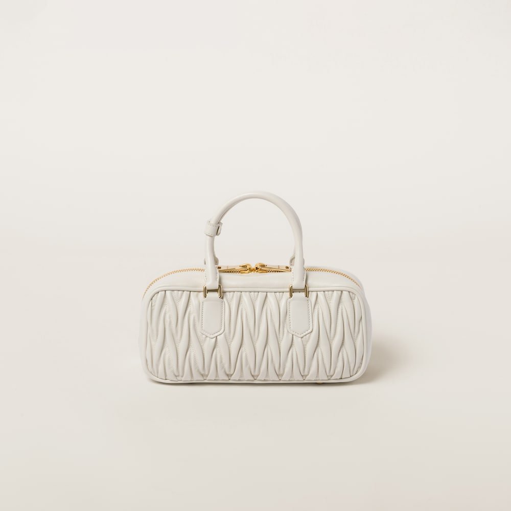 A luxurious matelassé motif reinterprets the classic silhouette of the top-handle bag through its three-dimensional, textured, and extremely sophisticated effect. The lettering logo on the front, which echoes the different metallic finishes, stands out against the refined artisan-crafted motif with an iconic and immediately recognizable touch. The dynamic and elegant lines and the detachable, adjustable shoulder strap contribute to the versatile, functional, and modern design of the bag.