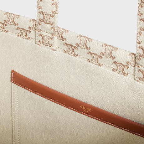 LARGE CABAS THAIS IN TEXTILE WITH TRIOMPHE CANVAS PRINT AND CALFSKIN WHITE