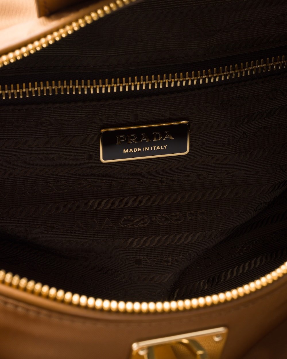 The archives come to life in the design of this Re-Nylon bag characterized by functional details and embellished with leather trim. The roomy accessory is completed with the closure with iconic lock inspired by travel trunks.