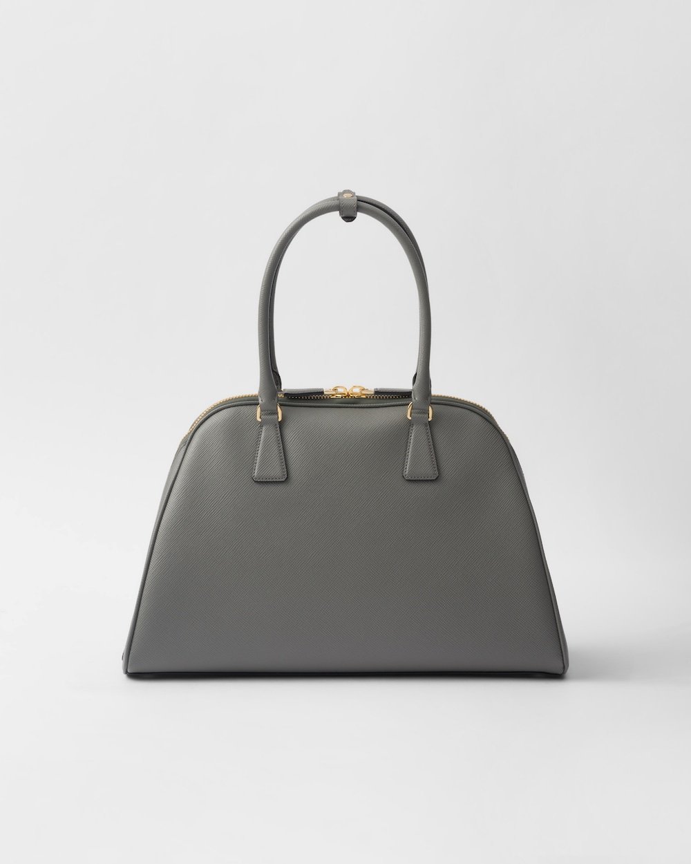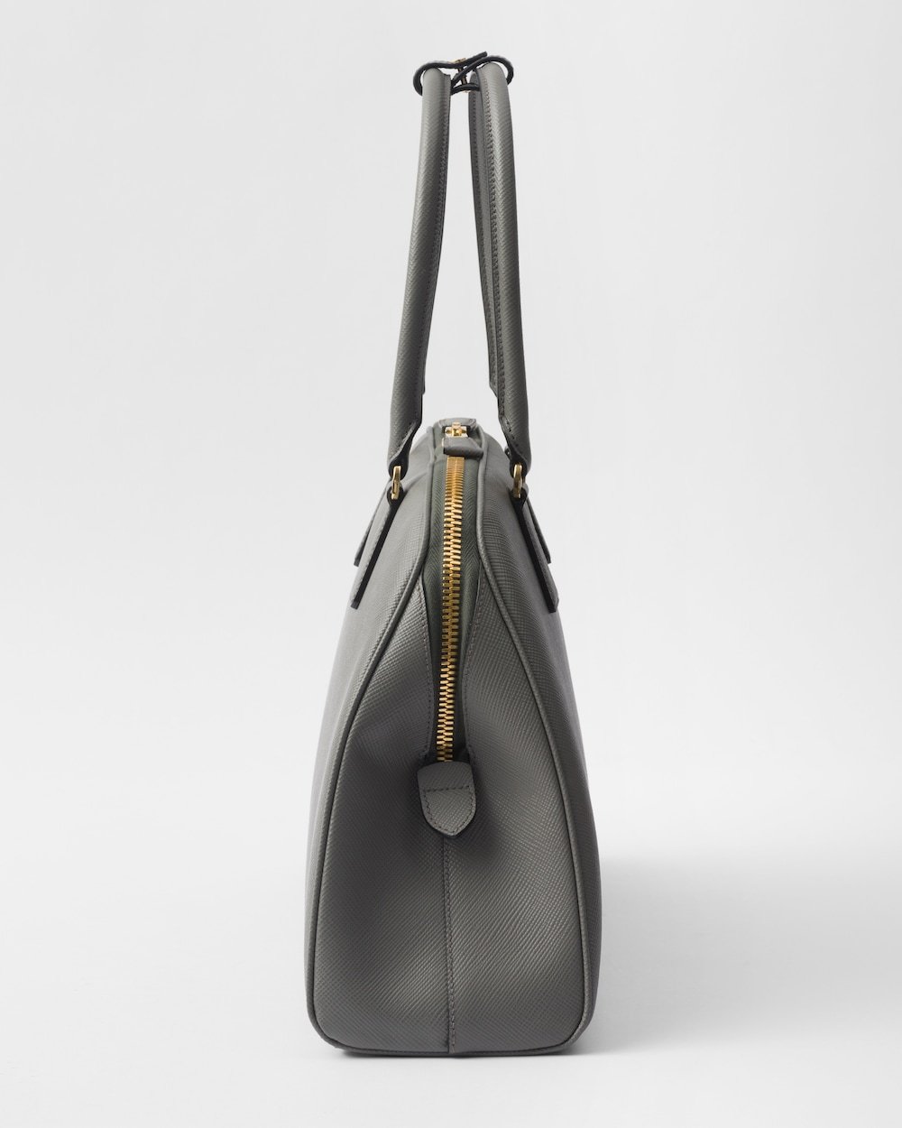 This bag with an elegant and sophisticated design and simple yet refined details emphasizes the distinctive crosshatch texture of Saffiano leather with a waxed finish. Brighten by the metal hardware, the accessory has a spacious interior with pockets and convenient leather handles. The lettering logo embossed on the front completes the versatile and timeless design, an expression of exceptional artisanal know-how.