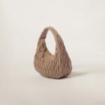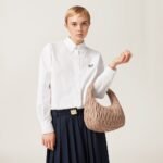 The Wander bag, reinterpreted season after season, has become an iconic accessory of Miu Miu collections. $ Made in matelassé nappa leather, the bag is characterized by the sophisticated, three-dimensional created by the fine workmanship. The hobo shape, blending retro inspirations and contemporary elegance, becomes a new synonym of modern femininity.