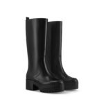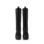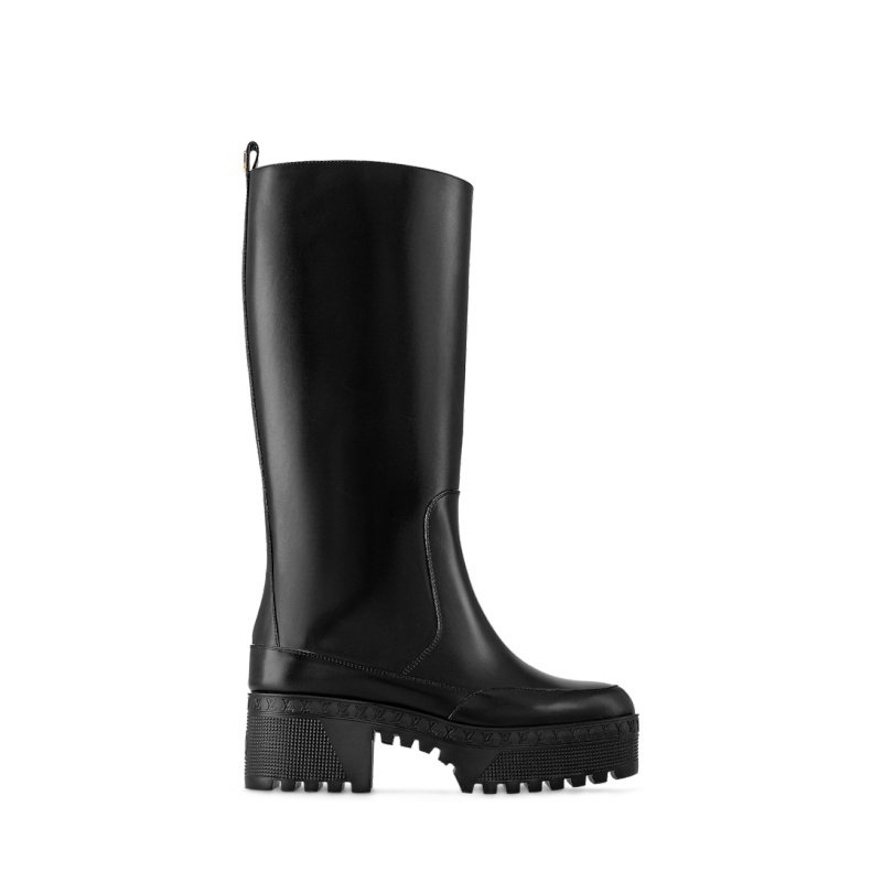 The Laureate platform high boot is crafted from supple calf leather for a sleek look and a comfortable fit. This model is distinguished by its lightweight platform outsole, which is decorated with a row of tiny LV Initials, evoking the lozine edging of Louis Vuitton trunks. This model is signed with a gold-tone LV Initials stud.