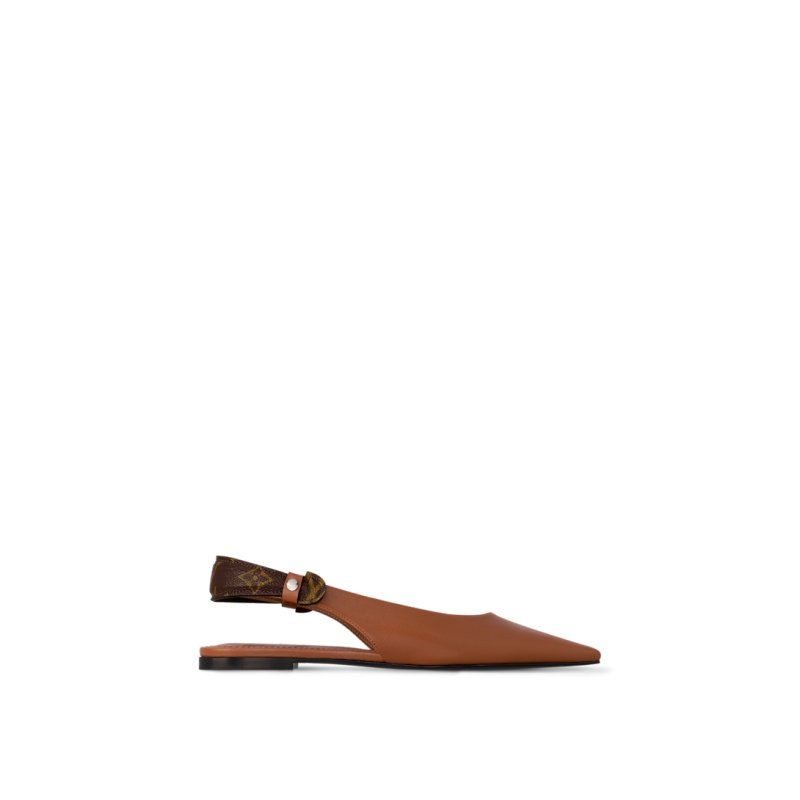The Legacy slingback ballerina in smooth calf leather is a sophisticated style inspired by the House’s travel heritage. Its key detail is a back strap in Monogram canvas, which is shaped like a trunk handle and embellished with engraved metal studs. This feminine ballet flat has a pointed toe and a fine leather outsole.