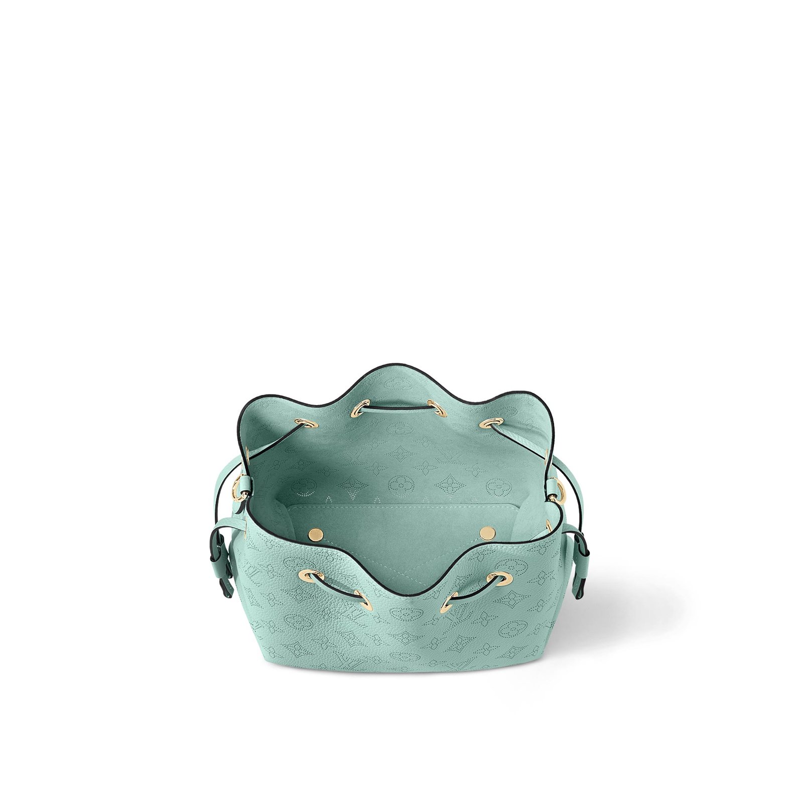 Edited this season in a delicate shade that will illuminate any Spring silhouette, the Bella bucket bag is made from Mahina calfskin. The Maison’s signature leather, with its contrasting perforations, is accented with silver hardware. The braided leather-and-metal handle and a detachable round coin purse add feminine charm to this casually sophisticated bag.