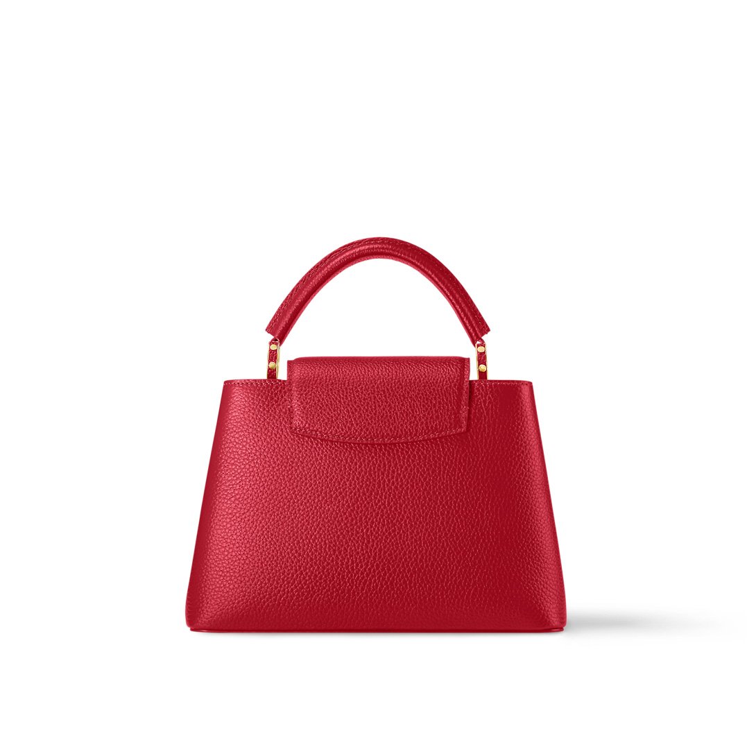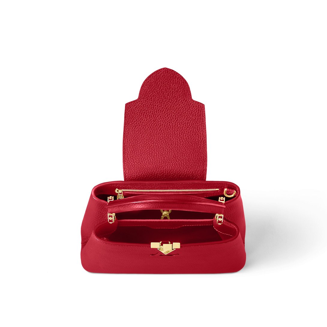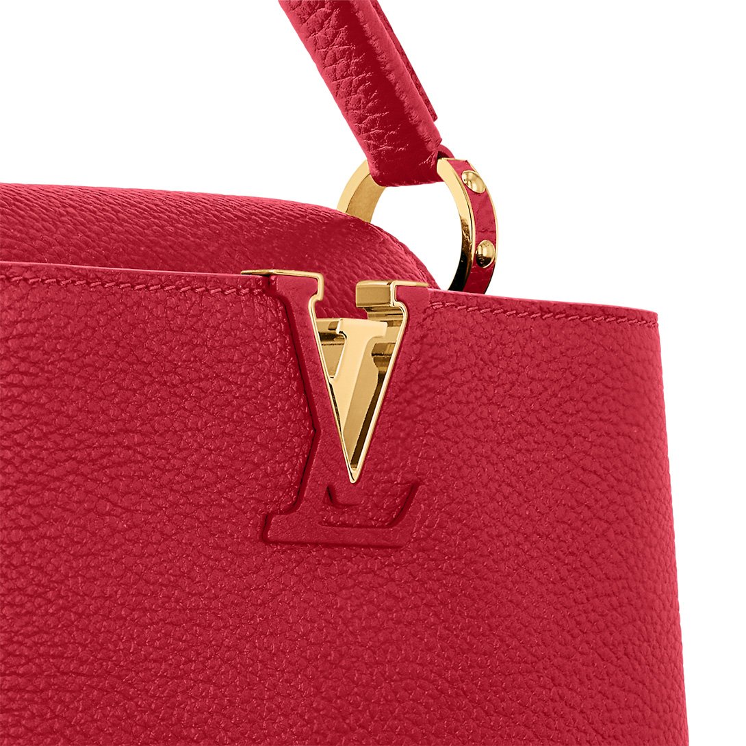 Fashioned from full-grain Taurillon leather, the now-classic Capucines BB handbag displays a host of House signatures:leather-wrapped LV Initials, jewel-like handle mounts inspired by historic trunks, and a distinctive flap with a Monogram Flower motif. Timelessly elegant, this charming model can be carried by hand or worn cross-body on its detachable strap. First launched in 2013, the Capucines is named for the Parisian street where Louis Vuitton first opened shop, in 1854.