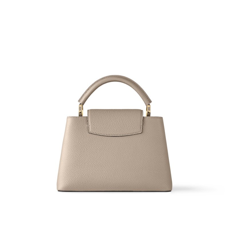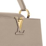 Fashioned from full-grain Taurillon leather, the now-classic Capucines BB handbag displays a host of House signatures:leather-wrapped LV Initials, jewel-like handle mounts inspired by historic trunks, and a distinctive flap with a Monogram Flower motif. Timelessly elegant, this charming model can be carried by hand or worn cross-body on its detachable strap. First launched in 2013, the Capucines is named for the Parisian street where Louis Vuitton first opened shop, in 1854.