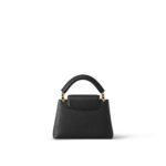 Fashioned from full-grain Taurillon leather, the now-classic Capucines BB handbag displays a host of House signatures:leather-wrapped LV Initials, jewel-like handle mounts inspired by historic trunks, and a distinctive flap with a Monogram Flower motif. Timelessly elegant, this charming model can be carried by hand or worn cross-body on its detachable strap. First launched in 2013, the Capucines is named for the Parisian street where Louis Vuitton first opened shop, in 1854.