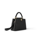 Named for the Rue des Capucines in Paris, where Louis Vuitton opened for business in 1854, the Capucines MM handbag was first introduced in 2013. Superbly crafted from full-grain Taurillon leather, it features a flap which can be worn two ways:outside to reveal a Monogram Flower, or inside to display the leather-wrapped LV Initials. Light enough to carry all day long, by hand, on the shoulder or worn cross-body with the detachable strap.