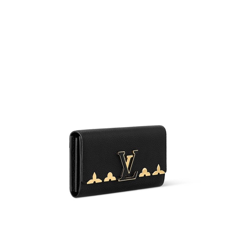 Matching the emblematic Capucines bag, this elegant wallet is given a refined, feminine touch by Monogram flower ornaments, which are fixed by hand to its flap, creating a crown-like effect. Its sleek design is large enough to hold all everyday essentials.