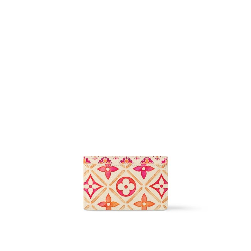 This summery edition of the Card Holder comes in coated canvas with a Mediterranean-style Monogram Tiles print incorporating a large LV Circle signature. Part of the LV By the Pool collection, this colorful accessory offers three card slots:one on each side and a larger slot in the middle.
