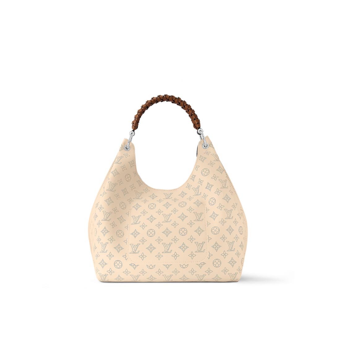 The Carmel hobo bag is a spacious, lightweight style in Mahina calf leather with Monogram perforations. The supple leather and the soft form of the bag combine to make it exceptionally pleasant to carry. Craft details such as the braided handle and LV leather charm add to the sophistication of this model.