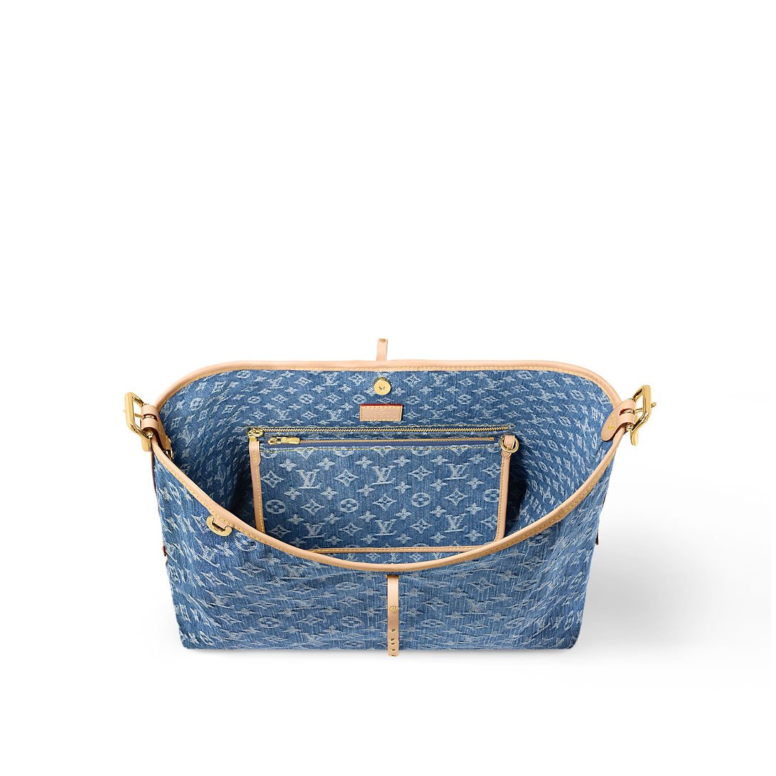 The roomy Carryall MM bag in Monogram Denim canvas with natural cowhide-leather trim combines style with functionality. The body-friendly design and spacious interior make it a versatile everyday bag. There’s an inside zipped pocket and a leather drawstring, in addition to the magnetic closure. The adjustable shoulder strap enables a comfortable carry.