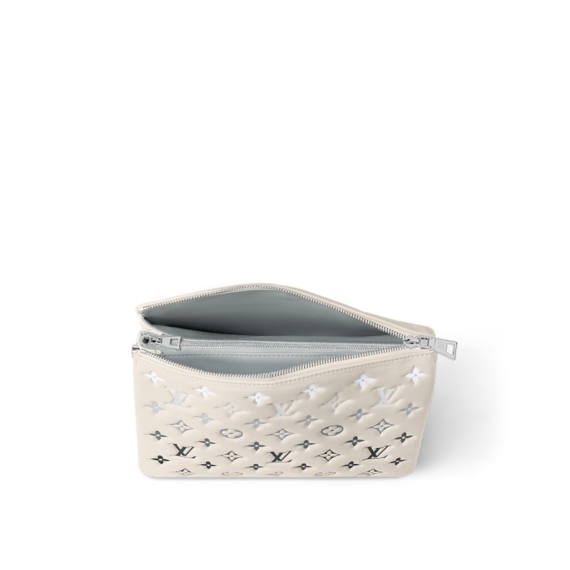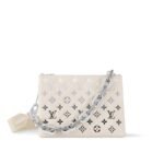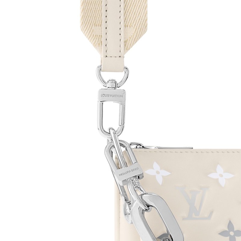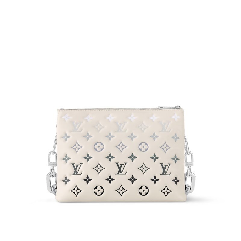 Designed for the LV Ski collection, this mountain-ready edition of the Coussin BB brings an elevated approach to aprés-ski dress codes. Showcasing a new gradient finish that matches the season’s Ready-To-Wear offering, it is crafted from lamb leather embossed with the House’s signature Monogram. The bi-galvanized chunky chain makes a bold statement, and can be removed if desired.