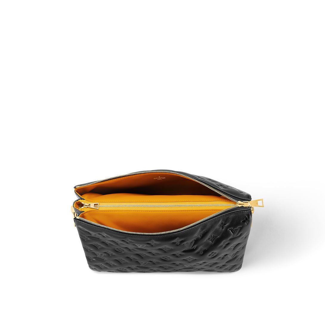 The most eye-catching bag of the Spring-Summer 2021 collection, the Coussin MM handbag is fashioned from puffy lambskin, embossed with a Monogram pattern. Voluminous, soft and supple, the bag almost feels like a pillow. An adjustable leather strap allows for shoulder and cross-body carry, while the new Edge Chain invites fashionable under-the-arm styling.