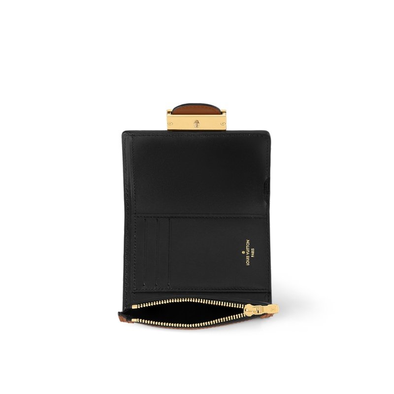 The Dauphine compact wallet takes its style cues from the emblematic Dauphine handbag. Its finely crafted design combines Monogram and Monogram Reverse canvas with calfskin trim, while it is secured by a magnetic Dauphine-signature clasp. This space-efficient wallet features a long pocket for bills and a zipped coin pocket on the side.