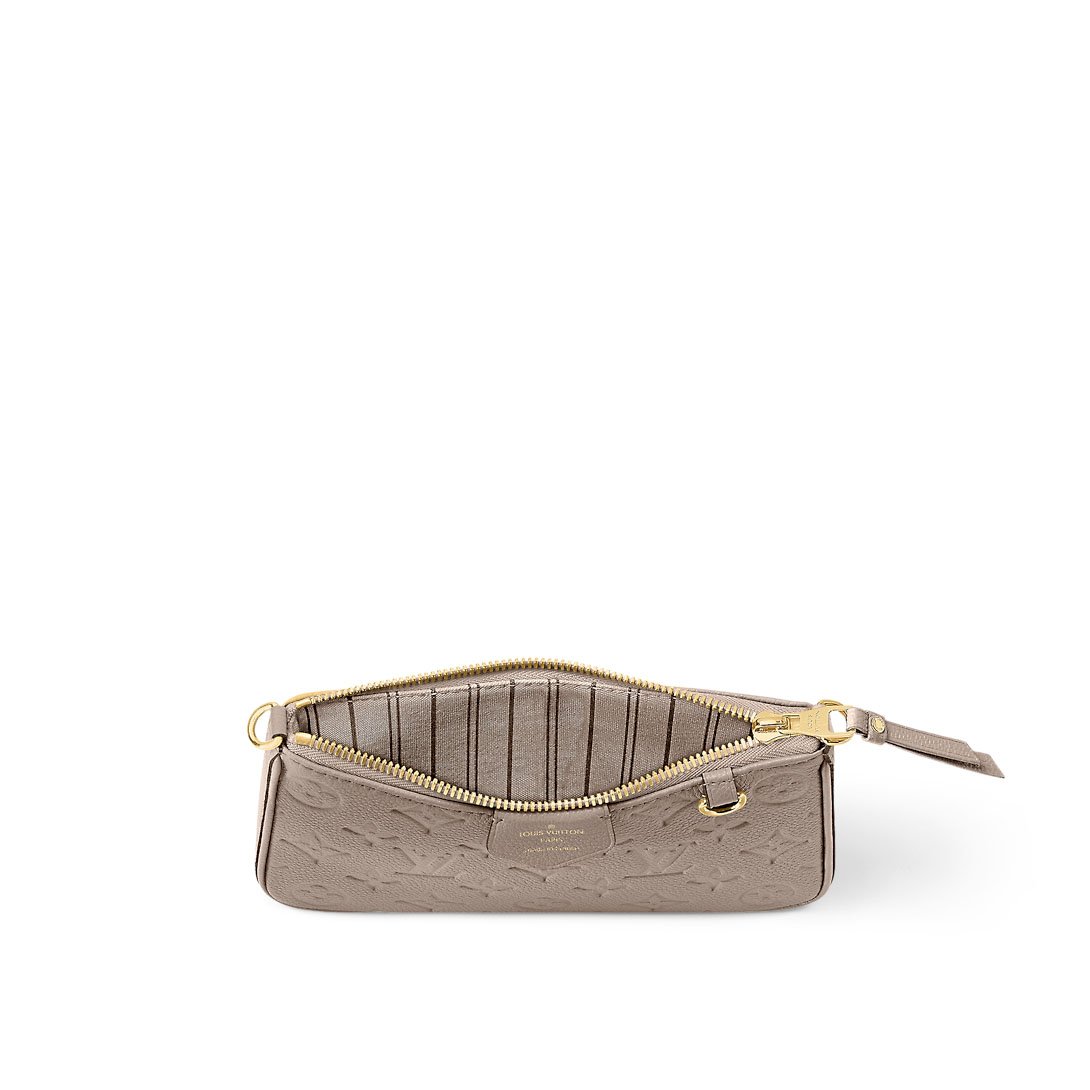 The Easy Pouch On Strap is made from Monogram Empreinte leather. The sleek design lends itself beautifully to the embossed Monogram pattern on the supple Empreinte leather. It can be worn on the shoulder, with the chain or the strap for a short carry, or cross-body as the leather strap is adjustable.