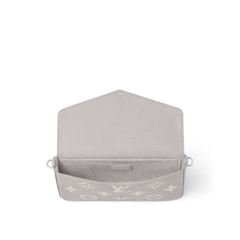 This seasonal edition of the Félicie Pochette showcases the House’s emblematic Monogram Empreinte leather in a sophisticated colorway. A perfect day-to-night style, it is designed with two removable pockets – one of which is zipped, while the other features eight card slots. The silver-toned chain lends an elegant finish, and can be removed if desired.