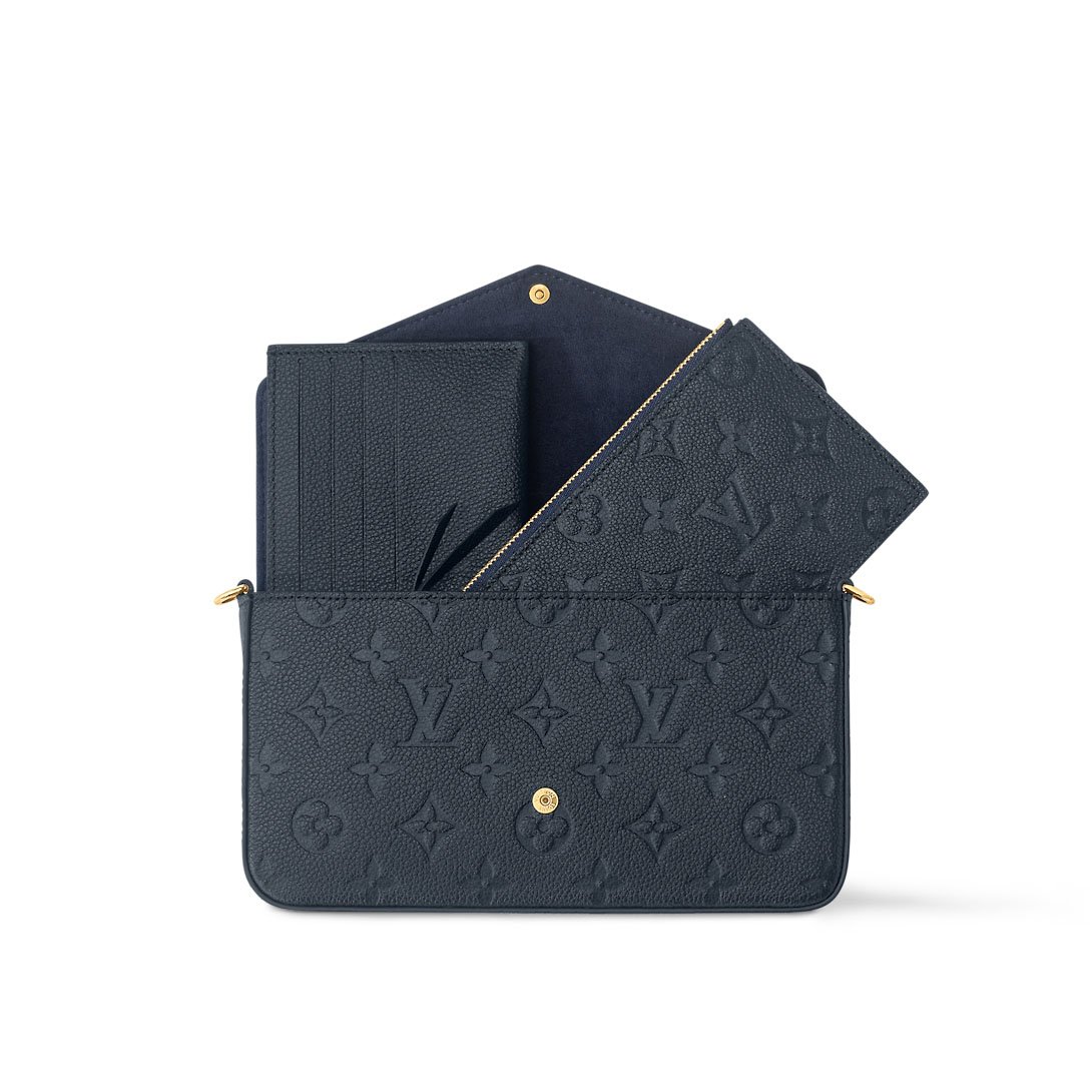 The elegant design of the Felicie Pochette is complemented by supple, grained Monogram Empreinte leather, which is discreetly embossed with the Monogram pattern. This chic, envelope-style pouch is notable for its versatility:it contains two removable pockets, one of which has eight card slots, while its chain is also removable, allowing it to double as a clutch.