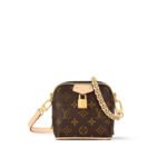 The Maison salutes its travel heritage with the Just In Case handbag. Made from Monogram canvas with natural cowhide-leather trim, this compact model keeps essentials – smartphone, keys, makeup – always close at hand. Detailed with a signature padlock and key bell, the bag is fitted with a leather-braided chain and a leather strap, both removable, for a variety of modern carry options.