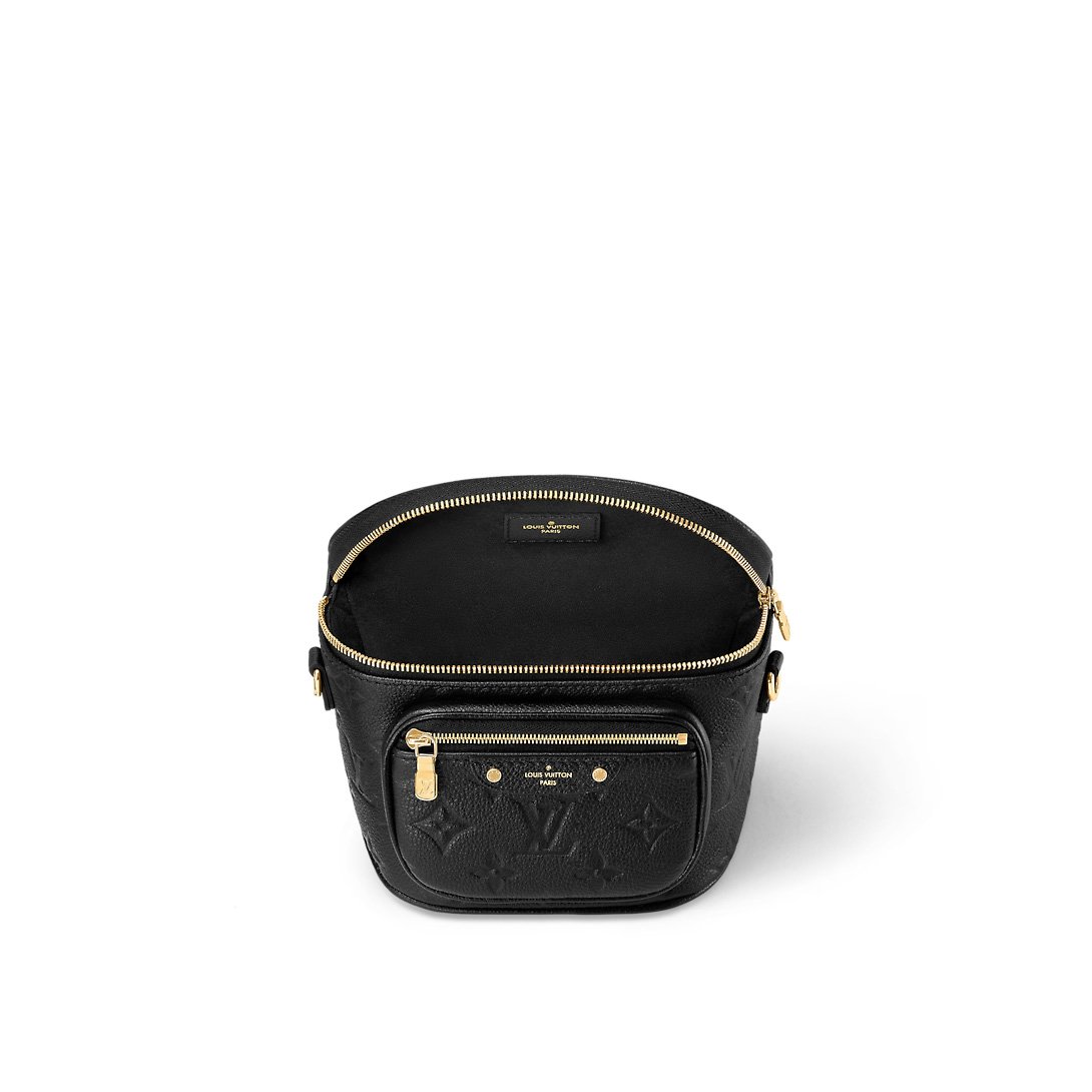 The Mini Bumbag is reinterpreted in supple, grained Monogram Empreinte leather, which is embossed with the Monogram pattern. This on-trend piece features a removable, adjustable strap and a removable, gold-tone chain for different looks and carry options. It has a zipped main compartment and a zipped front pocket with an embossed leather tag.