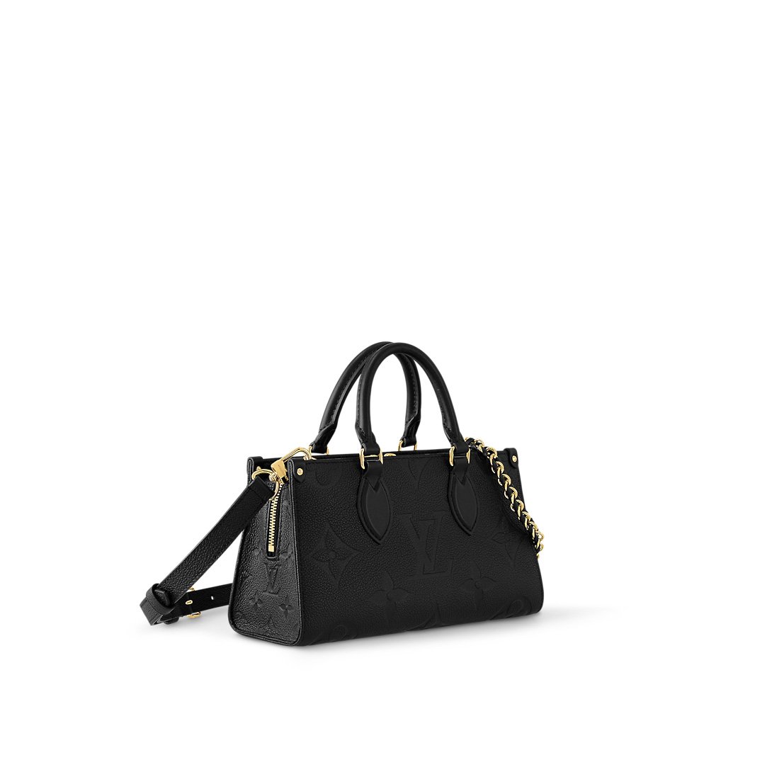Introducing the OnTheGo East West tote, interpreted in a beautifully proportioned east-west silhouette. Made from Monogram Empreinte leather embossed with a tonal Giant Monogram motif, this compact model boasts a well-organized interior for daily essentials. The bag lends itself to a variety of carry styles, thanks to its two articulated top handles and a removable chain-and-leather strap.