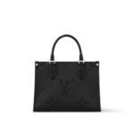 nspired by Louis Vuitton’s famous Sac Plat from 1968, the Onthego PM tote is fashioned in Monogram Empreinte leather, embossed with a subtle embossed Giant Monogram pattern. This smaller version of the original Onthego fits essentials such as an iPad Mini. Articulated top handles and an adjustable removable strap offer a variety of carry options.