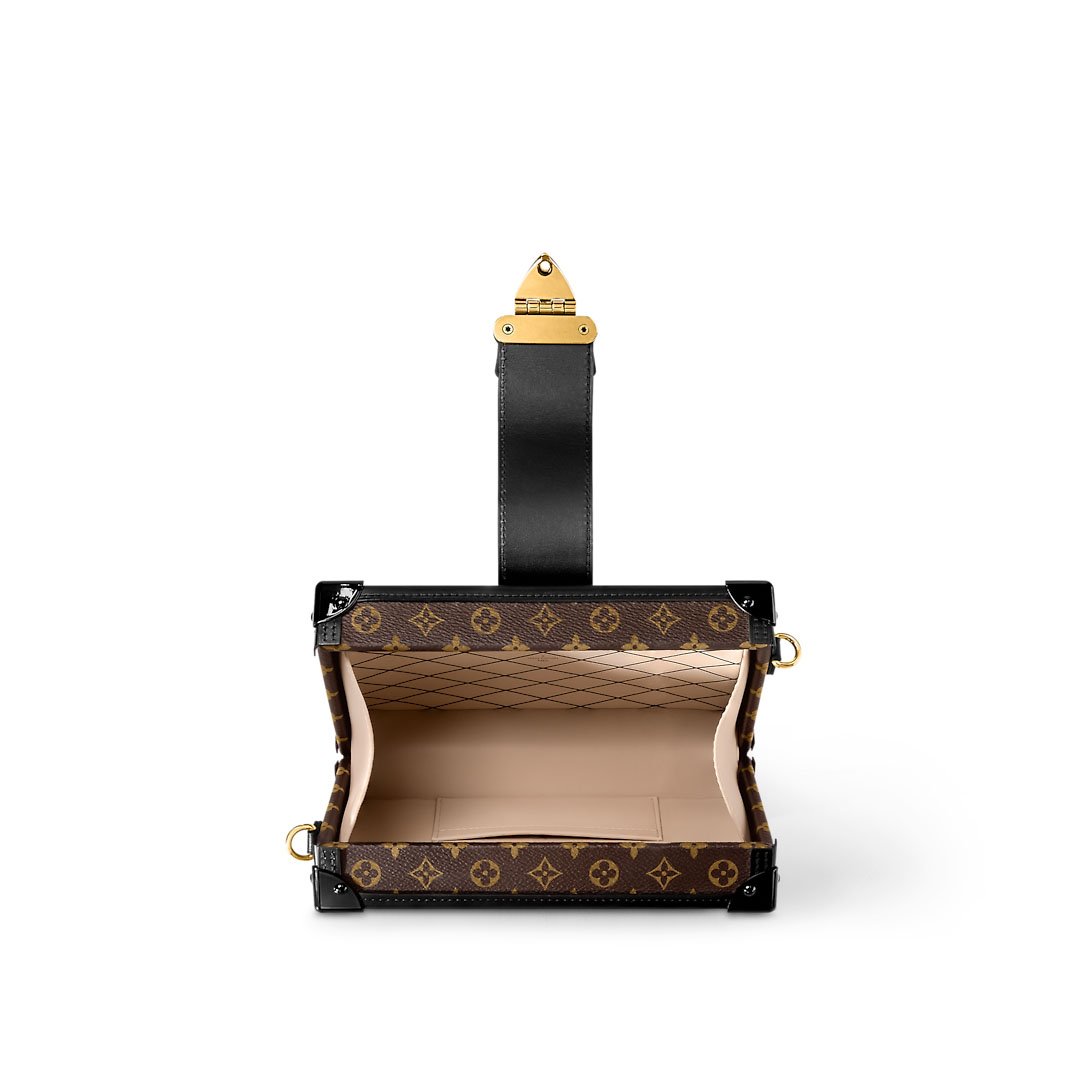 Every detail of the Petite Malle handbag is inspired by the history of Louis Vuitton trunks:the shape, the iconic Monogram canvas, the gold-tone lock and fittings – even the sheepskin lining reprises a classic House motif. Impeccably crafted, with smooth calfskin trim, this covetable “little trunk” travels easily from day to evening. It can be carried as a clutch or attached to the adjustable strap for cross-body wear.