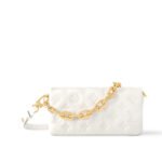The Pochette Coussin is crafted from soft lambskin, which is embossed with the Monogram pattern to create a puffy effect. This on-trend bag has a petite, rectangular format and a flap closure, which opens to reveal a contrasting leather lining. It has an adjustable, removable shoulder strap, as well as the signature chunky chain of the Coussin line.