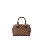 The Speedy Bandoulière 20 city bag is now offered in classic Damier Ebene canvas. Trimmed with chocolate-brown leather and fitted with a beige textile strap, this sporty model is designed for active lifestyles. It accessorizes any silhouette with its instantly recognizable shape, engraved gold-tone padlock and iconic, rolled Toron handles.