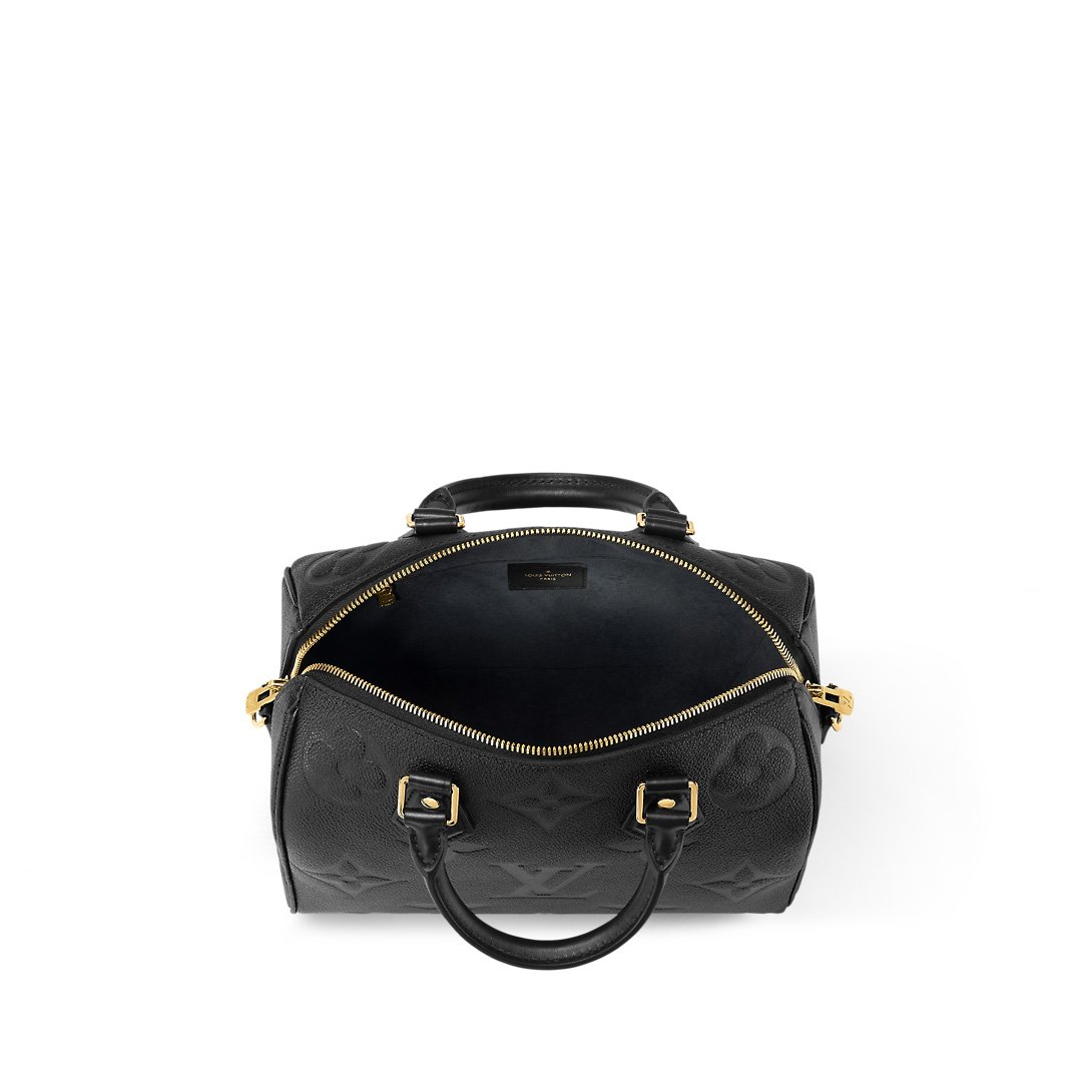 The Maison’s iconic Speedy 25 handbag is offered in this versatile edition, crafted from supple, embossed Monogram Empreinte leather. Elegant and compact, it is ideally sized for city life. Fitted with twin Toron handles and a detachable, adjustable leather strap, this timeless model can be carried by hand, worn on the shoulder or cross-body.