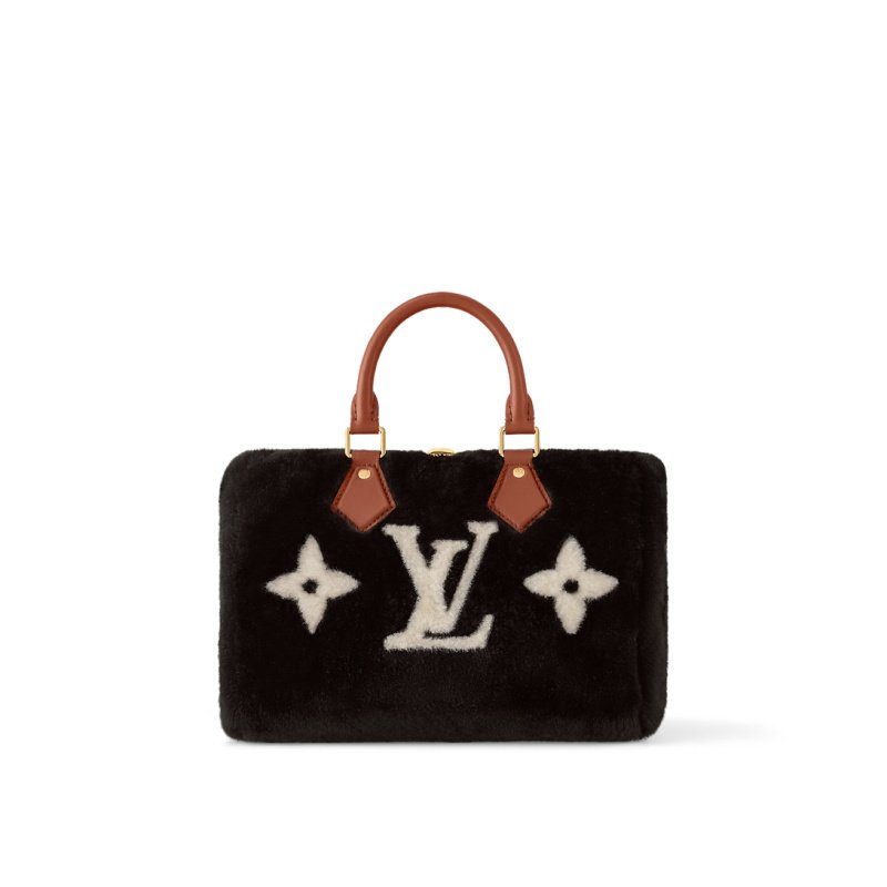 From the LV Ski Cozygram collection, this Speedy Bandoulière 25 showcases a new Monogram version in a beautiful chocolate and cream palette. It is crafted from ultra-soft merino-sourced shearling, elevated with smooth leather trims and gold-toned hardware, including a signature padlock. Inside, there is enough space for a Smartphone, wallet and keys, plus a mini tablet and makeup essentials.