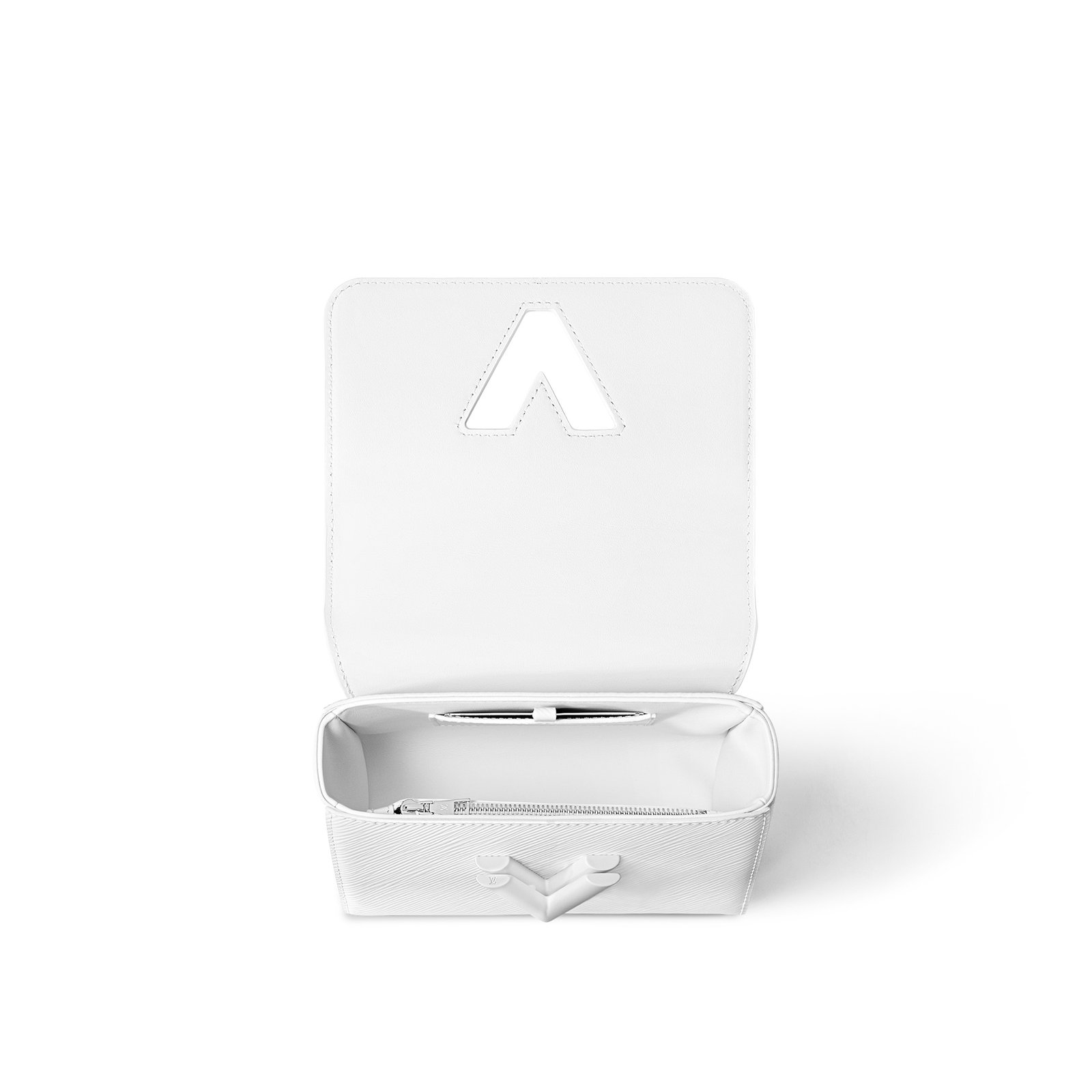 Designed in a fresh white hue, this monochromatic version of the Twist PM handbag is both timeless and modern. It is crafted from matte Epi leather, embellished with an LV Twist lock and tonal braided chain. The interior features a removable mirror and a zipped compartment for coins or keys and holds enough space to store a compact wallet, smartphone and other small essentials.