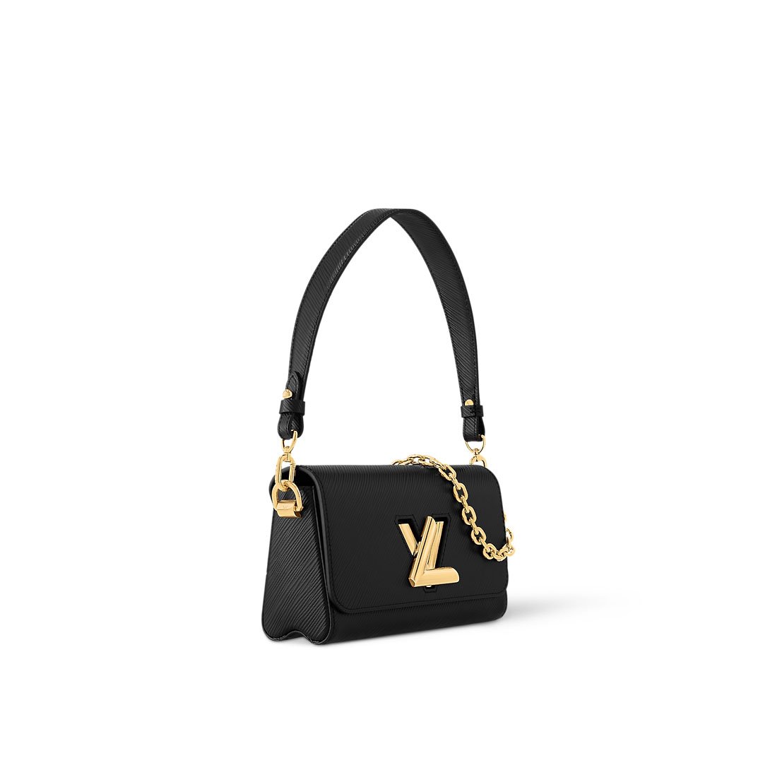 With its elegant, elongated shape, the Twist West handbag offers a cool new perspective on the House icon. Fashioned from Epi leather in an array of modern hues, it is signed with the beautifully crafted LV Twist lock. Sized to fit essential belongings, the bag adapts to a variety of carry styles thanks to its removable strap and chain.