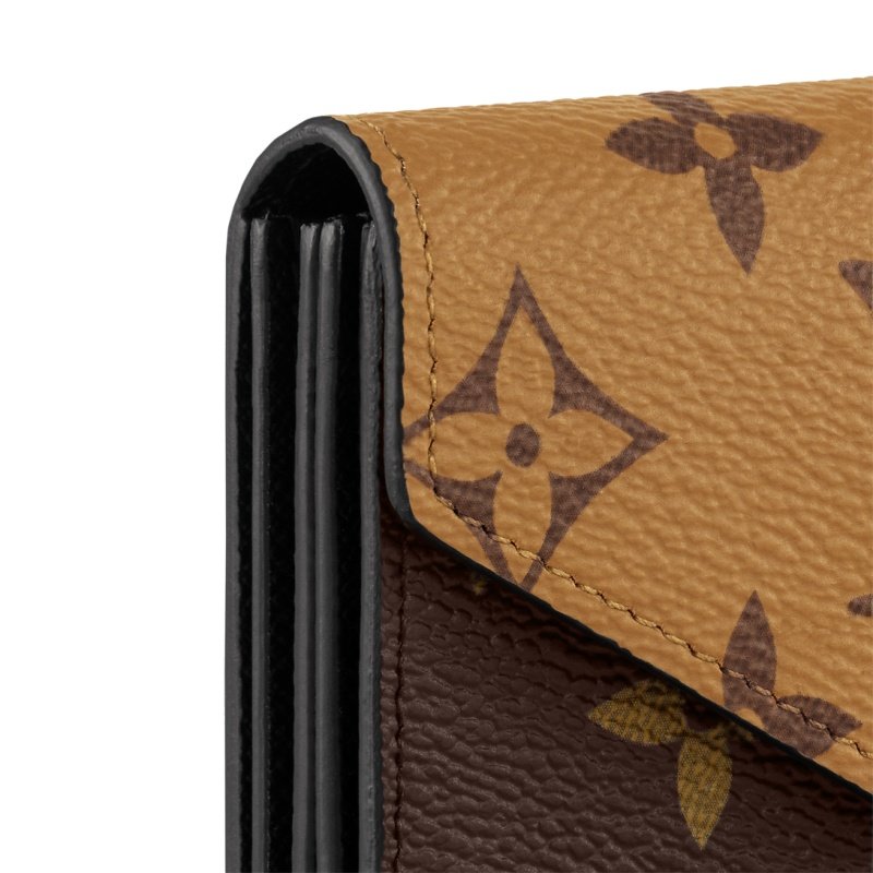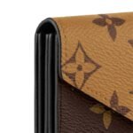 Handsome and secure, the Card Holder is made from Monogram canvas with Monogram Reverse canvas on the flap. The interior is divided into five gussets in which to put cards and other small essentials. It closes with a gold-color press-stud.