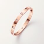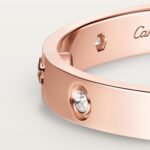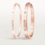 Product Description: LOVE bracelet Rose gold 750/1000 Set with 10 brilliant-cut diamonds totaling 0.96 carats Width: 6.1 mm Oval bracelet composed of two rigid arcs which is worn on the wrist and removed using a specific screwdriver The closure is designed with two functional screws placed on either side of the bracelet: you will need help to open or close it To determine the size of your LOVE bracelet measure your wrist adding one centimeter to your size for a tighter fit or two centimeters for a looser fit