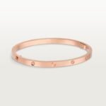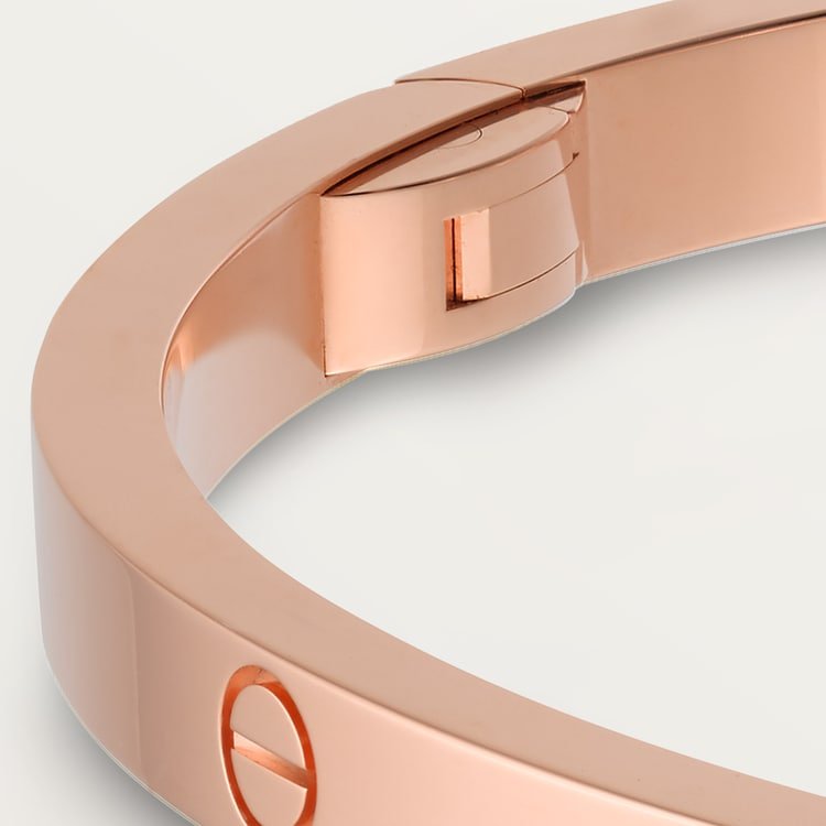 Product Description: LOVE bracelet Small model Rose gold (750/1000) Set with 6 diamonds totaling 0.15 carats Width: 3.65 mm Thickness: 2.05 mm (for size 17) Its oval shape ensures a close but comfortable fit to the wearer??s wrist The locking mechanism consists of a single functional screw on one side of the bracelet and a hinge on the other Each LOVE bracelet is sold with a matching screwdriver specifically created for this piece To discover your recommended LOVE bracelet size please visit our Bracelet Sizing chart Add one centimeter to your size for a tight fit or two centimeters for a looser fit