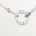 Product Description:LOVE necklace 18K white gold (750/1000) Set with 2 brilliant-cut diamonds totaling 0.03 carats Inner diameter:7.8 mm Adjustable chain length:380-410 mm