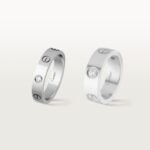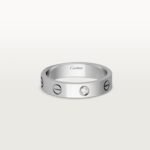 Product Description: LOVE wedding band 18K white gold (750/1000) Set with 1 brilliant-cut diamond totaling 0.02 carats Width: 4 mm (for size 52)