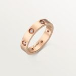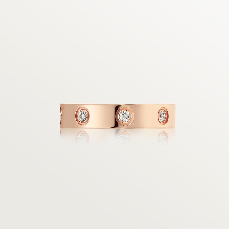 Product Description: LOVE wedding band Rose gold (750/1000) Set with 8 brilliant-cut diamond totaling 0.19 carats Width: 4 mm (for size 52)