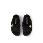 This luxurious iteration of the LV Bliss comfort mule comes in fluffy shearling. In a refined touch, its cross-over straps are embroidered with the heritage Malletage pattern, inspired by the lining of Louis Vuitton trunks. A gold-tone LV Twist accessory signs this on-trend, easy-to-wear style, which is finished with a lightweight rubber outsole.