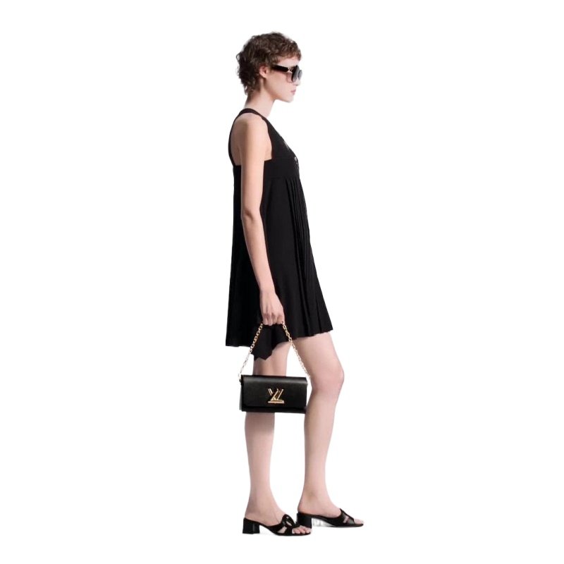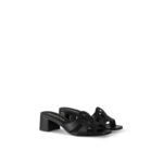The LV Isola mule has become one of Louis Vuitton’s emblematic styles. This version is crafted from smooth calf leather and comes on a low block heel, which is both elegant and easy to wear. This model is notable for the large LV Circle signature, cut out of the leather, which joins the straps on its upper.