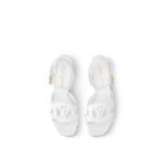 The iconic LV Isola collection welcomes the LV Isola sandal, crafted from supple calf leather. Distinguished by the oversized LV Circle signature on its upper, this elegant style comes on a high block heel, which is also covered in leather. This model is fastened around the ankle by a slender strap with a delicate, gold-tone buckle.