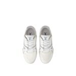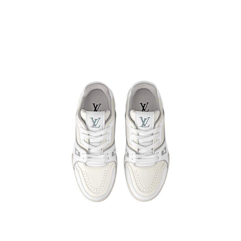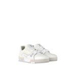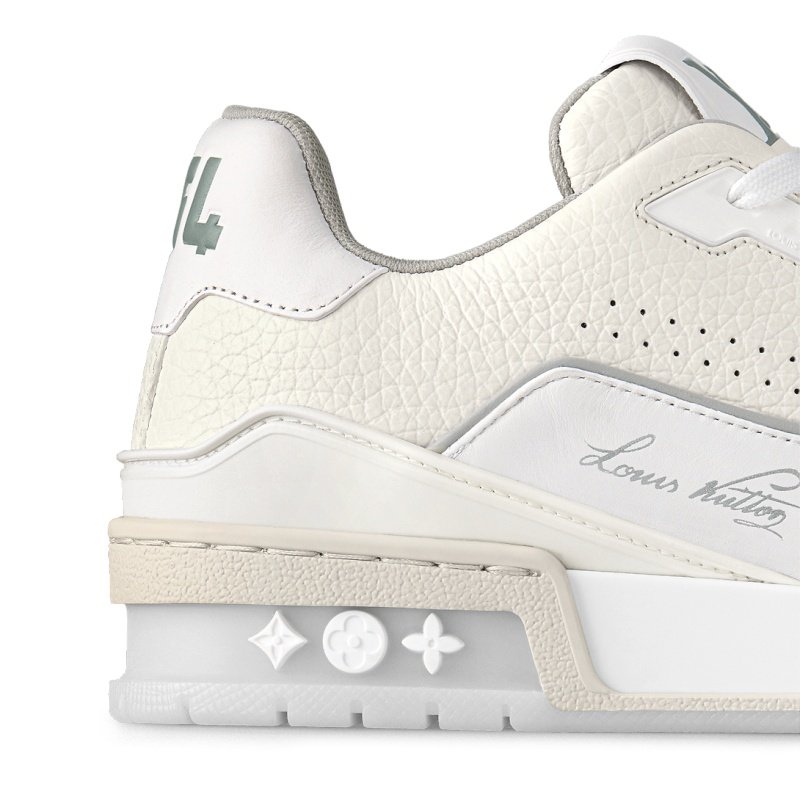 An emblem of the Men’s collection, this LV Trainer sneaker has been redesigned for women. Created by Virgil Abloh, this classic shoe is inspired by vintage basketball models. This monochrome version of the LV Trainer sneaker mixes grained calf leather and smooth leather. The #54 inscription on the back refers to the date 1854, the year the Maison was founded.